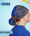 F-Bomb scrub cap features bold blue tones with playful hidden icons and contrast accents—perfect for adding sass, humor, and personality to long shifts.