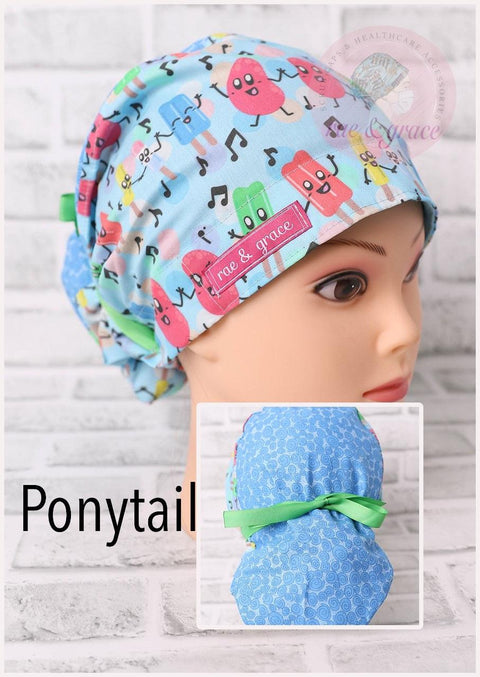 Ponytail - All the favorites you’re used to (comfort flannel band, adjustable elastic drawstring) but with extra room for long hair! Ribbons can be tied at the back of the neck for a bouffant fit, or wrap the ribbon around your hair to secure your ponytail.