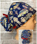Ponytail - All the favorites you’re used to (comfort flannel band, adjustable elastic drawstring) but with extra room for long hair! Ribbons can be tied at the back of the neck for a bouffant fit, or wrap the ribbon around your hair to secure your ponytail.