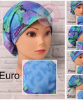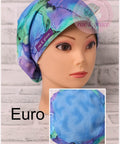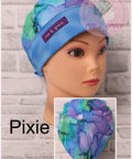 Pixie - Larger take on a Skull Cap. Sewn-in elastic for extra stretch and added space if needed. Ties in the back for a custom fit. Double-lined with accent material to fold over for a cute look.