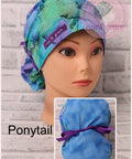 Ponytail - All the favorites you’re used to (comfort flannel band, adjustable elastic drawstring) but with extra room for long hair! Ribbons can be tied at the back of the neck for a bouffant fit, or wrap the ribbon around your hair to secure your ponytail.