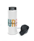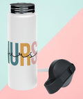 Quench your thirst in style with this stainless steel water bottle. Available in 2 sizes (12oz, 18oz) this water bottle features a double-wall stainless steel build that keeps your drinks frosty for 24h and soothingly hot for 12h. This BPA-free, steel water bottle comes with a twist-on lid for easy sipping, making it excellent for daily use at work, at college, in the car, and beyond.
