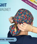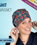 Add humor to your shift with the Shit Magnet scrub cap! Featuring playful poop emojis and magnets on a bold blue background, this cap is perfect for a lighthearted vibe!